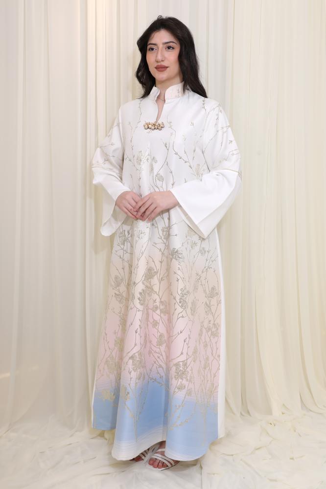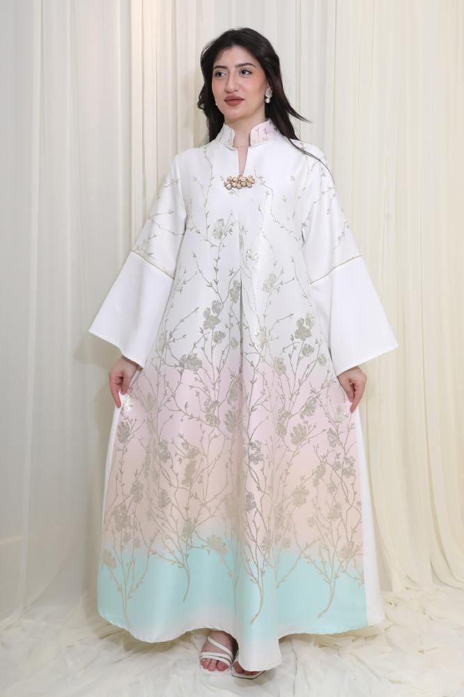 تألقي بإطلالة ملكية مع هذه الجلابية الفاخرة المصممة بتطريز زهري فاخر يضفي لمسة أنثوية راقية. تجمع بين التصميم الكلاسيكي والمودرن مع ألوان متدرجة هادئة تضفي سحرًا خاصًا على مظهرك. تأتي بأكمام واسعة تمنحك الراحة والانسيابية، مما يجعلها خيارًا مثاليًا للمناسبات الخاصة والسهرات. متوفرة بألوان أنيقة تشمل تركوازي، سماوي، وأزرق، لتتناسب مع ذوقك الفريد. أضيفي هذه الجلابية من Only You إلى خزانتك لمظهر أنيق يعكس رقيك.